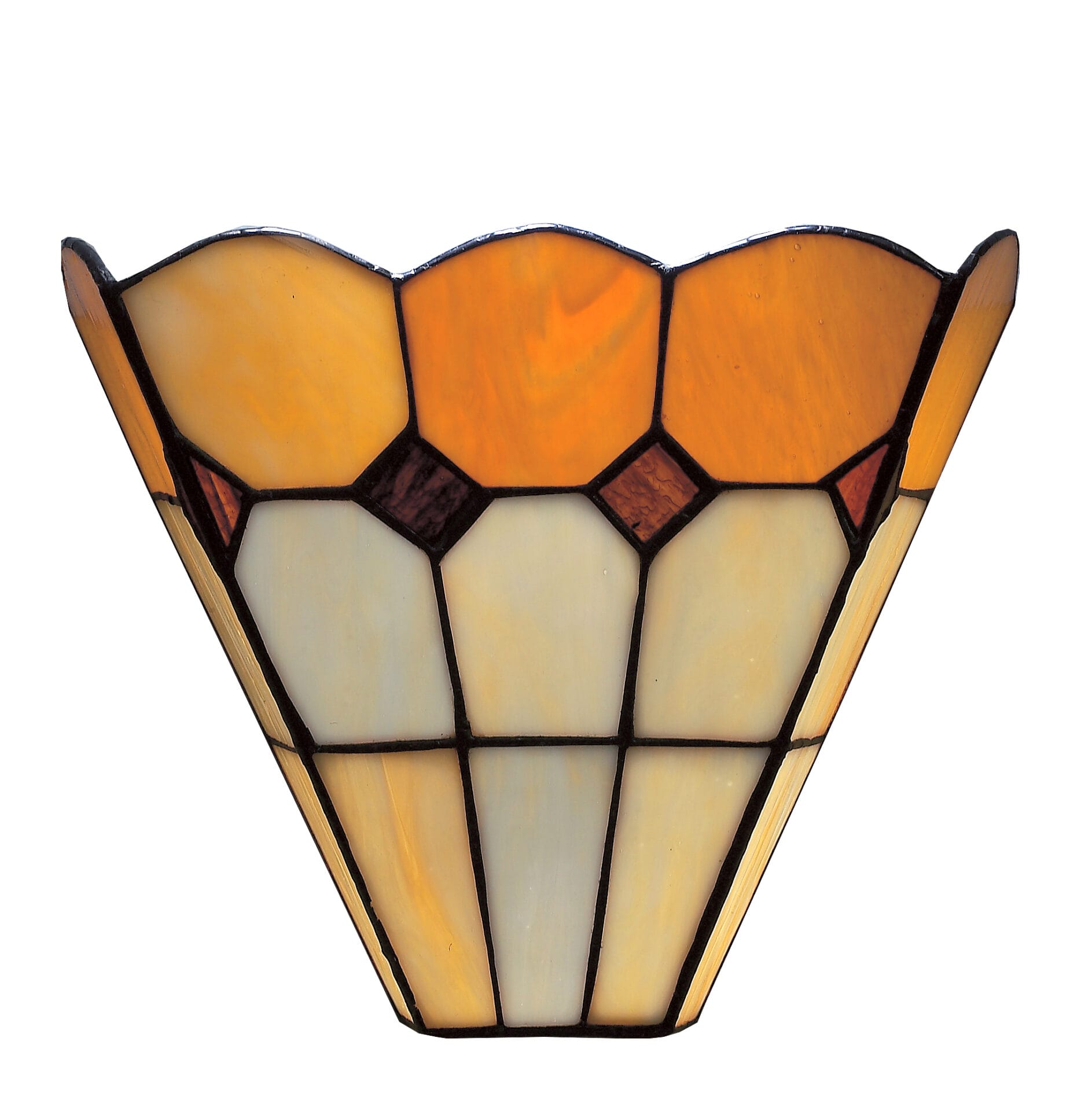 Exquisite Bistro Stained Glass Red and Beige wall light in soft opalescent glass. Part of the classic Bisto family, the wall light 23cm in dia. And 21cm high. It will take up to 60 watt or higher illumination in LED.