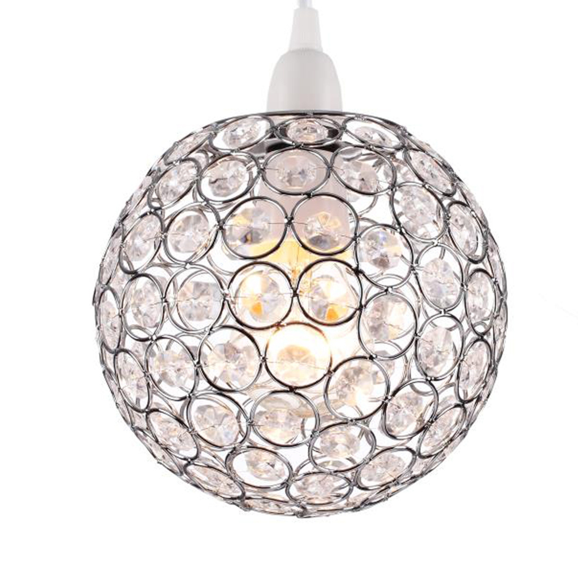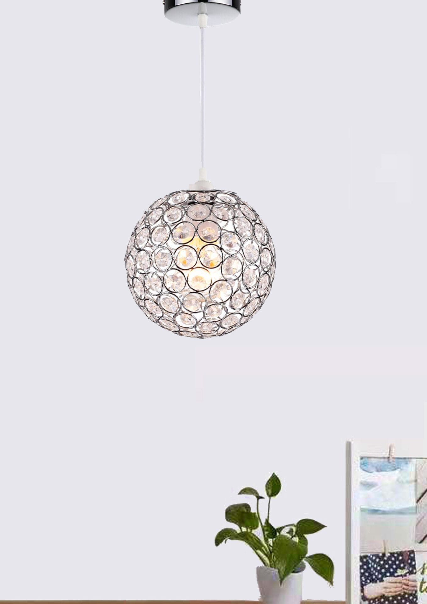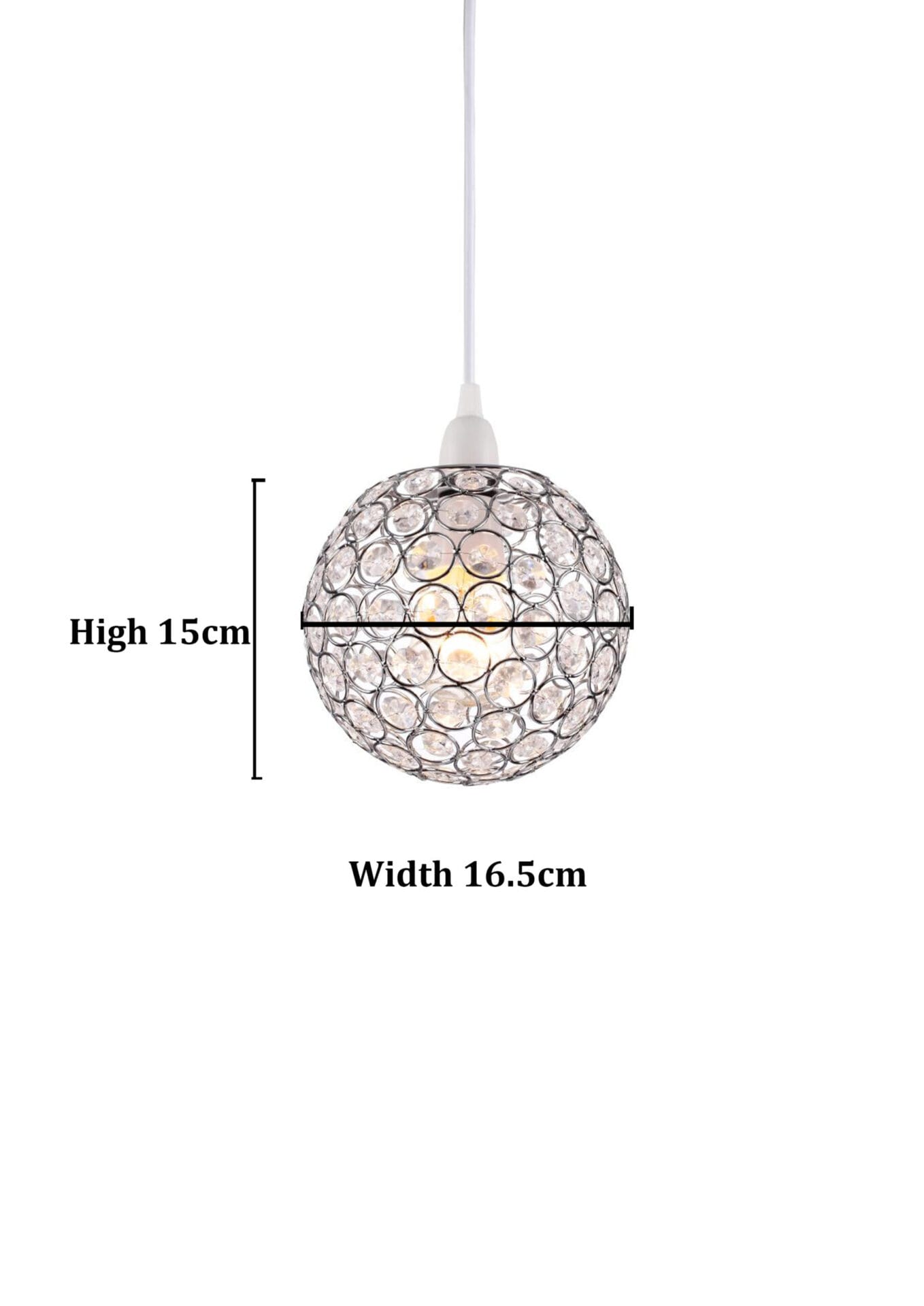 An easy fit Polished Chrome & Clear Acrylic Jewel Sphere Design Ceiling Pendant Light Shade. A clear bulb gives a stunning low cost lampshade which just goes on your bulb holder. 16.5cm diameter, 15cm Height.