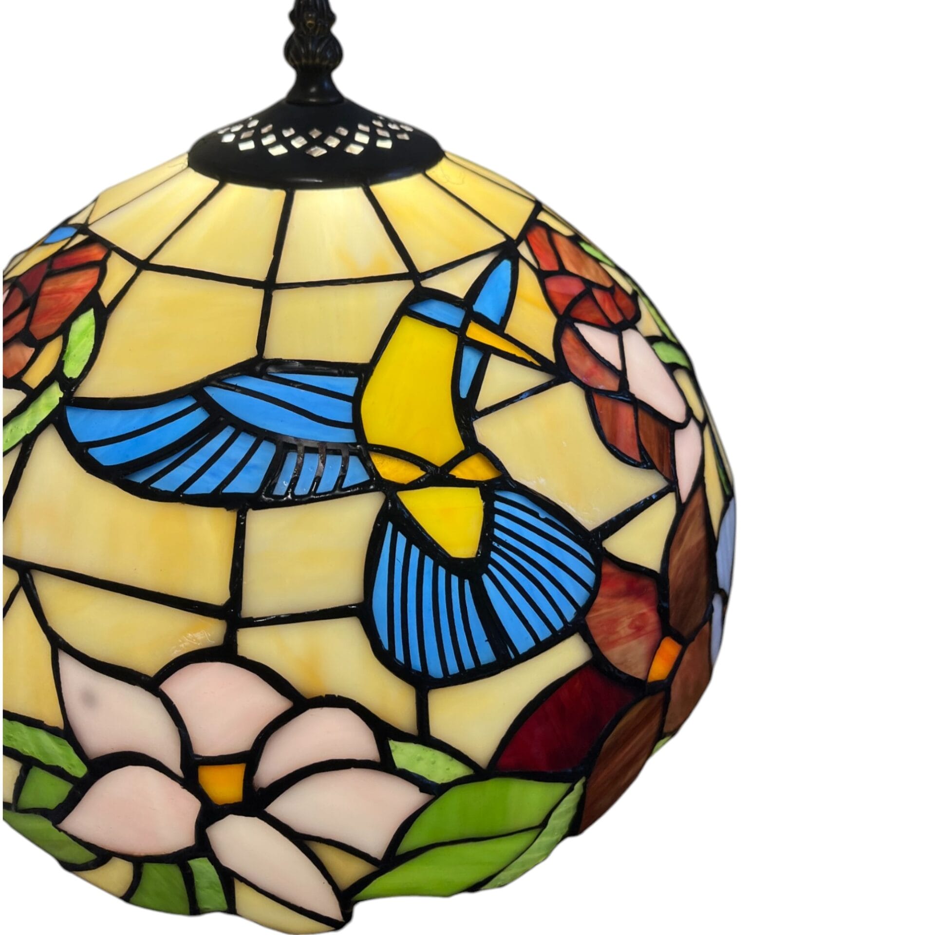 Tiffany Style Table Lamp, 30cm Dia’ Tiffany Hummingbird Flower Table Lamp, Antique Bronze Baes