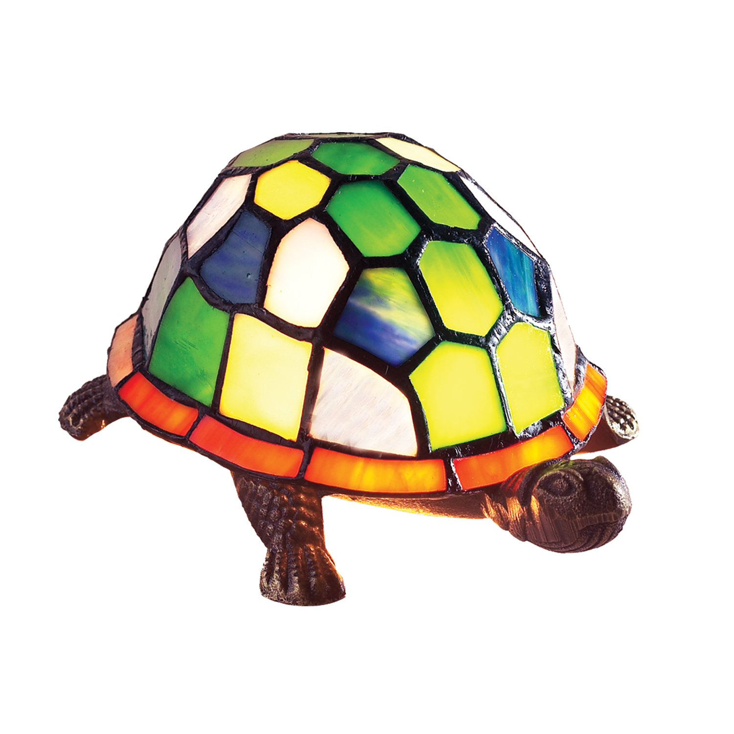 Very cute and popular stained glass table lamp in the shape of a turtle where the shell illuminates