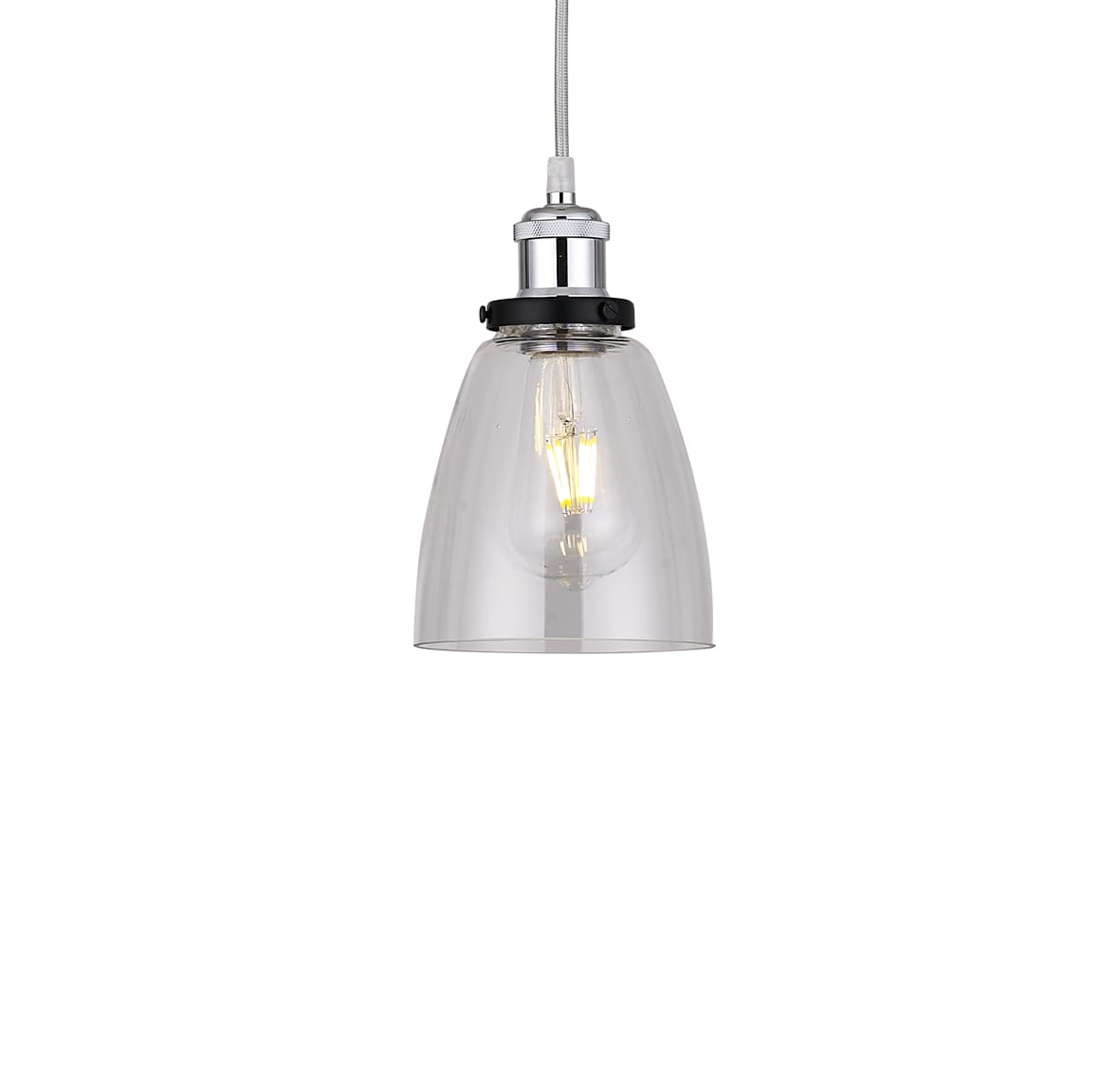 A stylish easy fit pendant† in clear glass with a 42mm shade ring.† An industrial looking pendant glass lampshade which fit onto an electrical suspension or can just simply screw onto your existing lightbulb holder. Also ideal for wall lights.† Looks fantastic with a vintage filament bulb (not included) Dia 14cm Ht 16cm